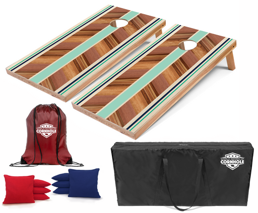 View full detailsWorld Series of Cornhole Recreational Cornhole Set - Retro Colored Stripes Boards with Red and Turquoise Bags