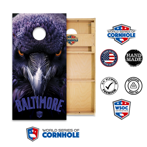 View full detailsWorld Series of Cornhole Official 2' x 4' Professional Cornhole Board Runway 2402P - Baltimore Ravens