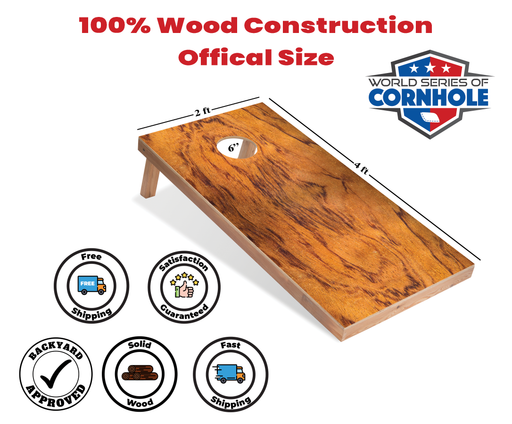 View full detailsWorld Series of Cornhole Recreational Cornhole Set - Tiger Woodgrain Boards with Red and Blue Bags
