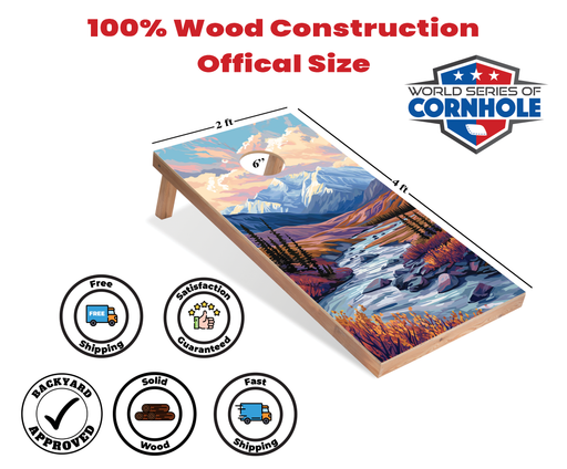 View full detailsWorld Series of Cornhole Recreational Cornhole Set - Rocky Mountain National Park Daytime Boards with Red and Royal Blue Bags