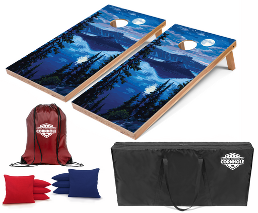 View full detailsWorld Series of Cornhole Recreational Cornhole Set - Glacier National Park Nighttime Boards with Red and Royal Blue Bags