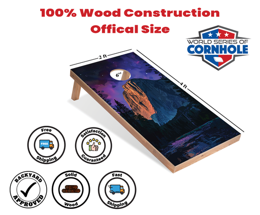 World Series of Cornhole Recreational Cornhole Set - Yosemite National Park Nighttime Boards with Red and Royal Blue Bags